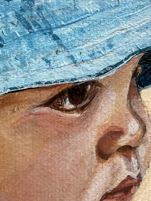 The painting took 9-days for me to complete. The detailing upped the total painting time which I estimated at around 80-hours. A considerable increase from my previous works. I made over 10 small poster studies exploring the colour balance and the blue background alone took a day to paint.